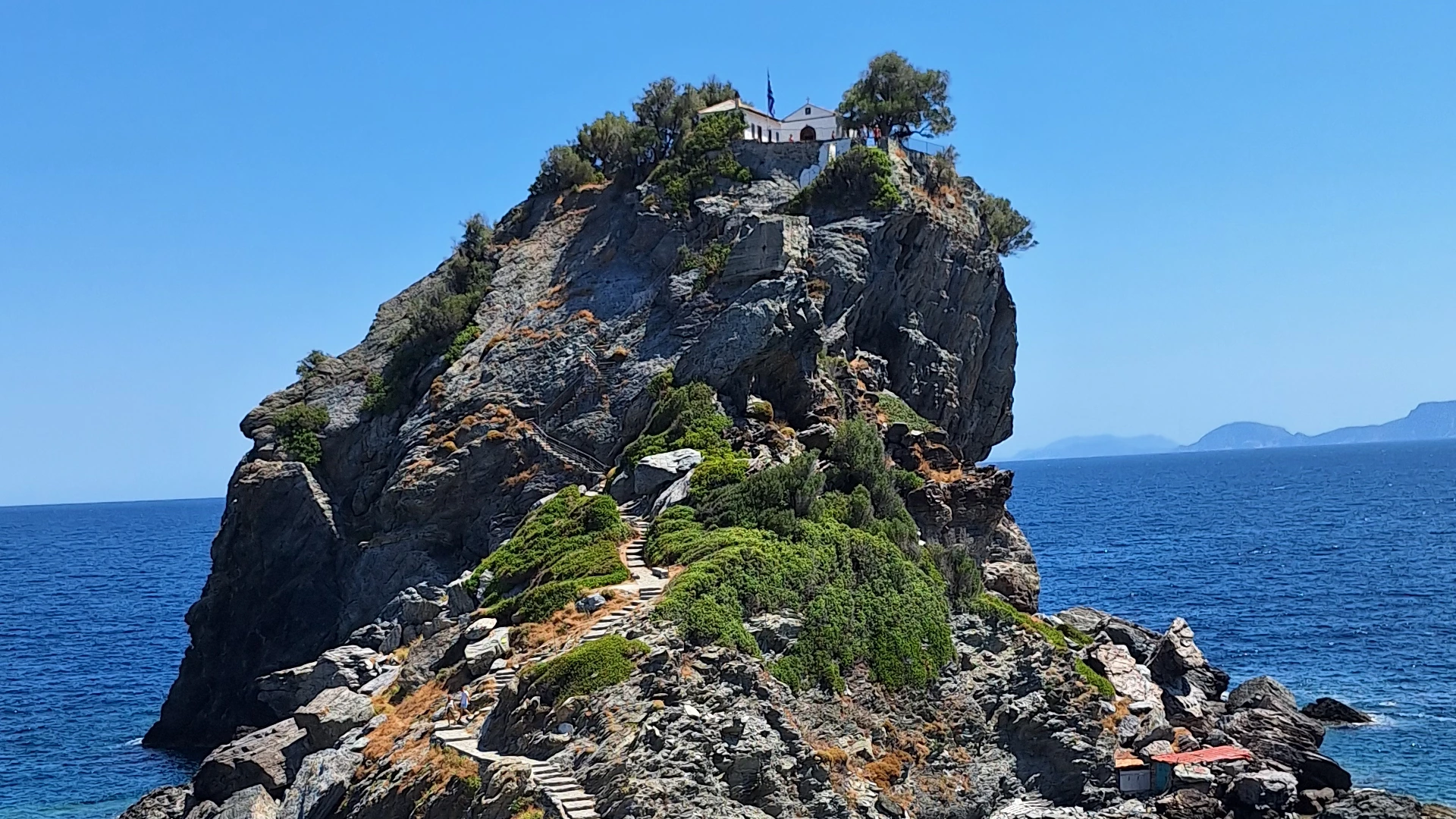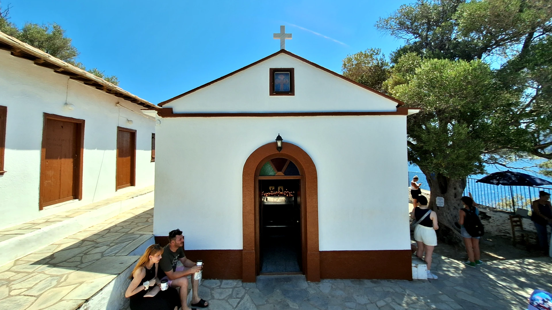 Tu sme okrem iného navštívili aj zátoku Agios Ioannis, nad ktorou sa vypína malá kaplnka. Tá je známa najmä z filmu Mamma Mia!, keďže práve v nej sa (akože) odohráva záverečná filmová svadba.