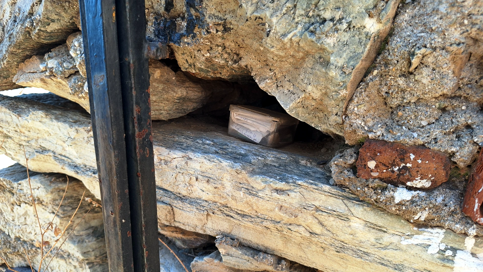 Po tom, ako naša loď zakotvila v spomínanej zátoke na cca hodinku, svižným tempom (aby sme tam boli medzi prvými :-)) vybehli sme hore ku kaplnke. Po rýchlej prehliadke vnútra kaplnky a jej okolia som pohľadal aj kešku. Chvíľku mi síce trvalo ju nájsť, keďže sme sa však nechceli kúpať, iba si pozrieť kaplnku, nakoniec sme mali dosť času.