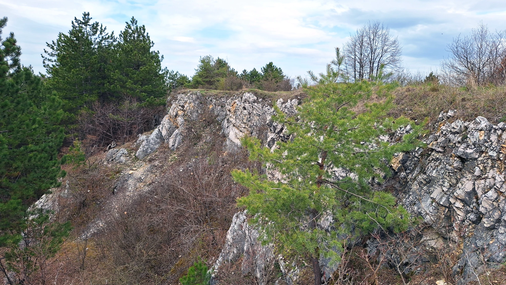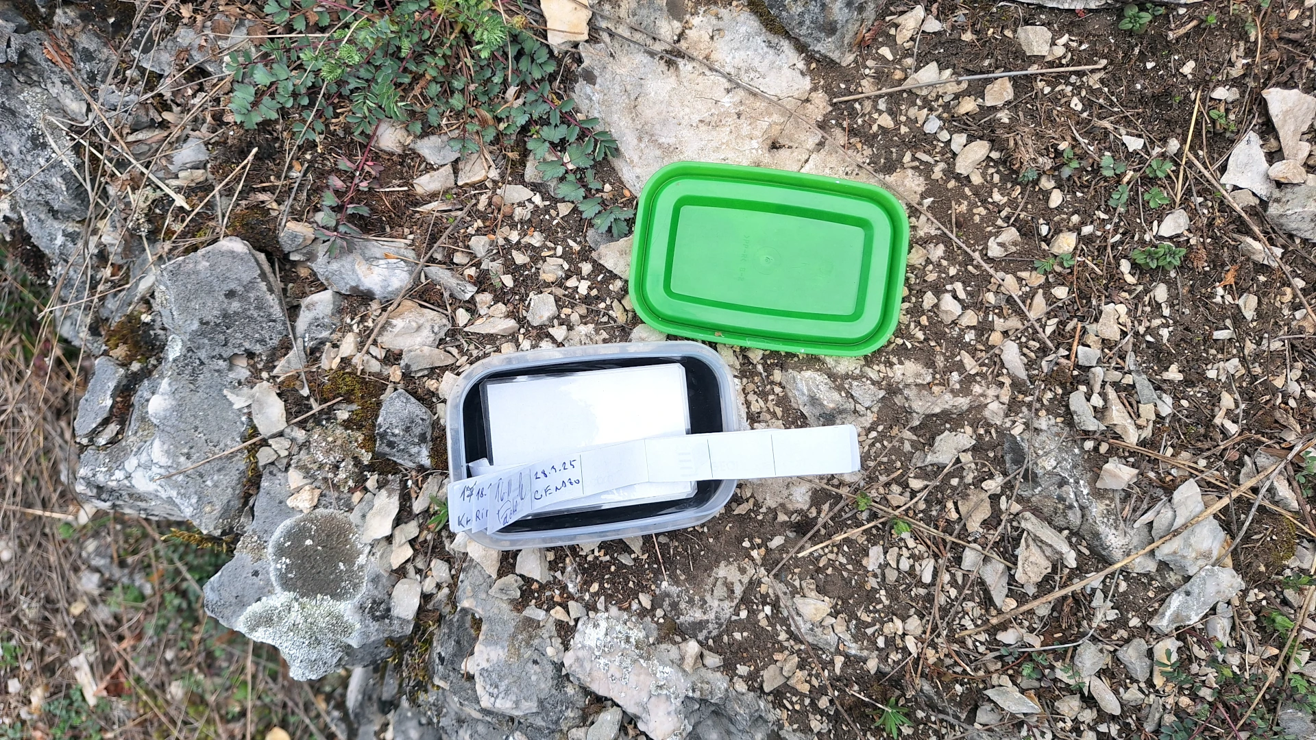 Po tom, ako sme sa pokochali výhľadom z rozhľadne na Vápennom vrchu, zbehli sme pozrieť aj neďaleké skalné útvary s názvom „Skalky“. Ani nie 10 minút po lesnej cestičke. Aj keď nemá rád krabičky ukryté „pod skalou“, túto som našiel rýchlo na prvý kuk.